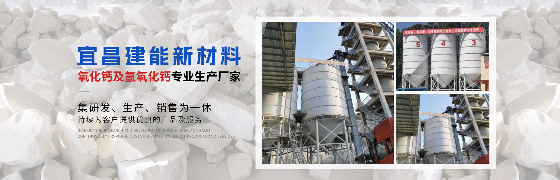 宜昌建能新材料有限公司 地址位于湖北省宜都市姚家店鎮(zhèn)油榨坪村二組,交通便利。我們公司是一家專業(yè)從事石灰研發(fā)、生產(chǎn)、銷售為一體的高科技生產(chǎn)型企業(yè)。公司采用優(yōu)良石頭資源,出產(chǎn)的石灰品質(zhì)優(yōu)良,主要經(jīng)營(yíng)產(chǎn)品有石灰石、石灰塊、石灰石粉、氧化鈣、氫氧化鈣、母料專用灰鈣粉、建筑用石、方解石粉、重晶石粉等。 公司生產(chǎn)的石灰、碎石等產(chǎn)品,以優(yōu)良的產(chǎn)品質(zhì)量,獲得了不少客戶的信任。 公司秉承“誠(chéng)信、優(yōu)質(zhì)、共贏”的經(jīng)營(yíng)理念,堅(jiān)持用戶至上、服務(wù)優(yōu)先原則,用心解除客戶所憂;以科技服務(wù)和好的產(chǎn)品服務(wù)客戶;始終堅(jiān)持以“想顧客之所想,急顧客之所急”的經(jīng)營(yíng)理念,不斷前行......
